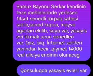 Bağ işlərinə dərhal başlamaq üçün suvarma qovşağı olan, hasarlanmış əkinsahə. Bağ, bostan, tinglik və damlama/səci suvarma sisteminə uyğun planlama.