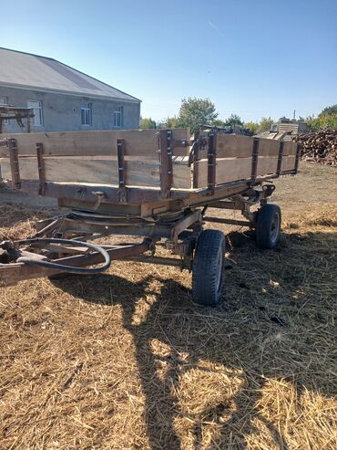 - Traktora uyğun ikioxlu qoşqu əlavə olunur: döndərmə qurğulu ön ox, taxta bortlu yük platforması, metal karkas, halqa tipli yedək qoşma mexanizmi. Yük daşınması, məhsul və ot aparılması üçün münasibdir.