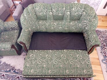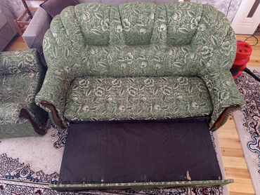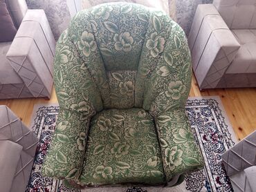 Yumuşaq və geniş 2kreslo ve 1 divan - Rəng: tünd yaşıl - Parça: məxməri toxumalı yumşaq örtük - Naxış: bej və açıq yaşıl tonlarda kiçik romb və düzbucaqlı fiqurlar - Dizayn: dərin oturacaq, hündür...