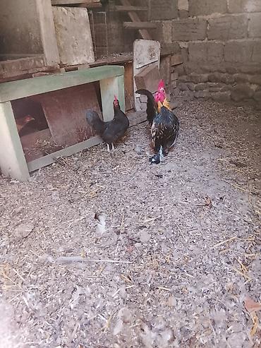 - 2 ədəd yumurtacı tipli toyuq: biri qara, digəri krem-qəhvəyi naxışlı.