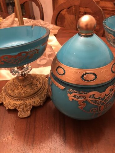 - Rəng palitrası: parlaq firuzəyi (türküz) şüşə + qızılı dekor.