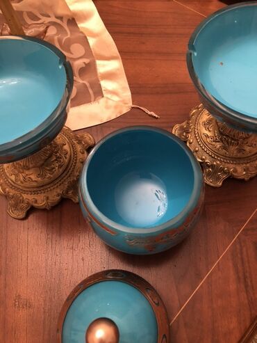 - Ölçü təxmini: ayaqlı kasalar orta ölçülü; qapaqlı qab orta-həcmli (şəkillərdə ölçü nisbəti görünür).