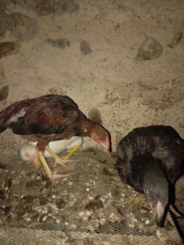 - Şəkillərdə gördüyünüz konkret fərdlərdir; ağ iri xoruz, xallı-boz kiçik tip və üç cavan quş birlikdə mövcuddur.