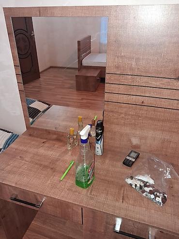 - Güzgülü makiyaj/komod masası – geniş iş səthi, aşağıda siyirmə və şkaf hissəsi, kvadrat güzgü