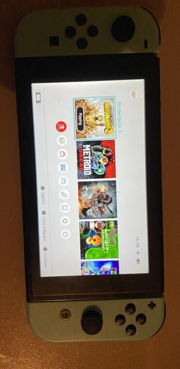 - Ekran görüntülərində görünən oyunlar menyusu: Borderlands 3, Metroid Dread, Luigi’s Mansion 3 və s. (rəqəmsal kitabxana cihazda görünür)