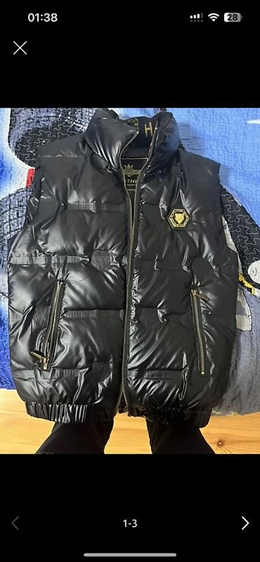 Qara rəngli kişi/unikseks şişmə jilet - Uzun model, dizə yaxın kəsim - İsti saxlayan yüngül şişmə dolğu - Yüksək yaxalıq - Ön hissə: fermuar və düyməliklə ikiqat bağlanma - 2 ədəd yan ciblər (düym...