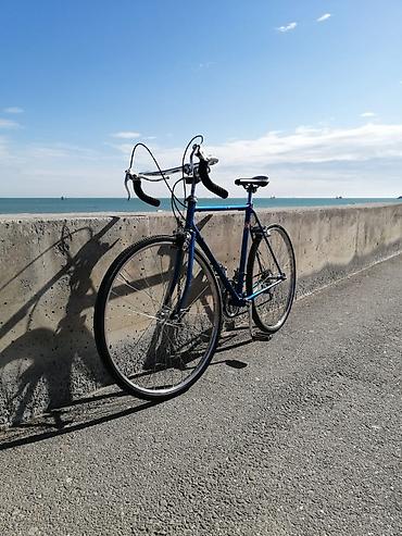 - Gövdə: yüngül metal çərçivə, klassik şosse geometriyası, mavi rəng