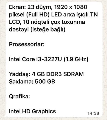 - 21.5" (təxmini) geniş ekran, Full HD dəstəkli, ön hissədə inteqrə edilmiş veb‑kamera
