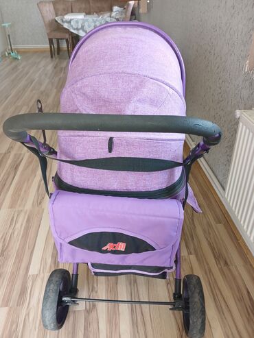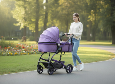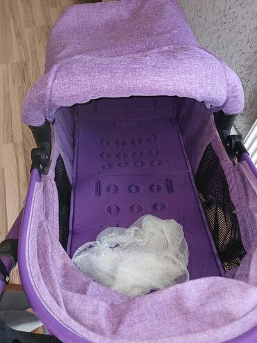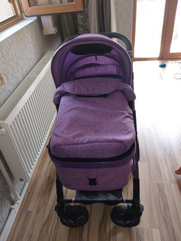 Uşaq arabası – bənövşəyi rəng, 2-in-1 tipli (körpə beşiyi kimi dərin oturacaq və gəzinti rejimi).