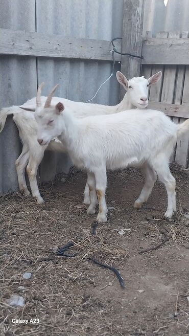 Ağ sanin buynuzlu sanin keçisi 3 aylıq boğaz - Növ: süd və ət istiqamətli yerli keçi - Rəng: tam ağ, qısa tüklü - Cins: dişi - Buynuzlar: simmetrik, orta ölçülü, arxaya əyilmiş - Bədən quruluşu: y...