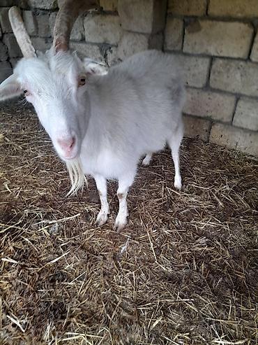 Ağ rəngdə, uzun saqqallı və qalın, qıvrım buynuzlara malik erkək keçi