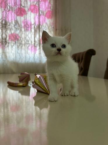 Ağ rəngli balaca pişik balası - Yumşaq, qar qədər ağ tüklər - Şirin, iri gözlü üzdə canlı mimika - Aktiv və oynaq, insanla ünsiyyətə açıq - Kiçik ölçülü, ev şəraitinə uyğun - Günəş altında rahatla...