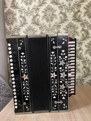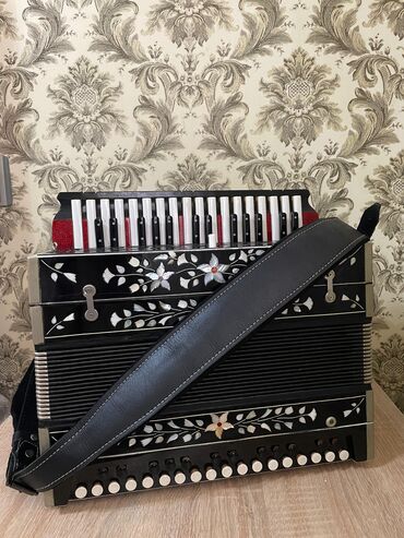 Məhsul: Qarmon / Akkordeon (klaviaturalı) Xüsusiyyətlər: - Korpus: qara rəng, üzərində incə naxışlı inlay dekoru (çiçək, kəpənək və quş motivləri) - Sağ tərəf: pianino tipli 25 klavişli klaviatura...