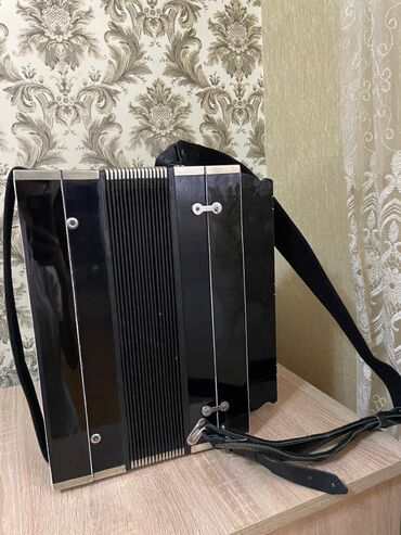 Akkordeon – klavişli və bas düyməli - Tip: Klavişli akkordeon (piano klaviaturası) və sağ tərəfdə bas/akord düymələri - Korpus: Qəhvəyi-mərmər fakturalı örtük, metal yan qapaqlar, klassik keçə kör...