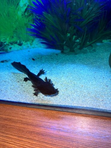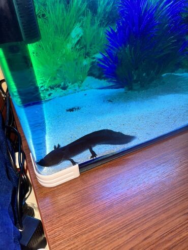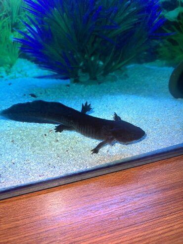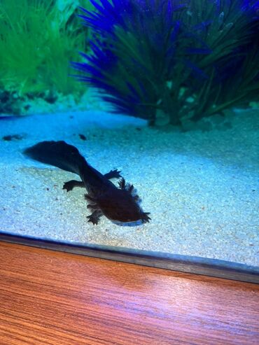 - Nadir və maraqlı ev heyvanı olan qara rəngli aksolotl (Ambystoma mexicanum).