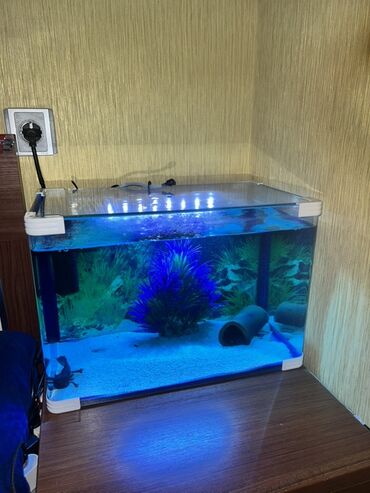 10 litrliy akvarium, dib örtüyü, bitgi dekor ve 5 eded rengli baliğ 25azn Akvarium baliglarinin satiwi 🐬Ağ şəffav danio ve glofishler 0.40azn 🦈 Danio baligi olcu 2 sm+,reng qirmizi,benovwe,sari,ya...
