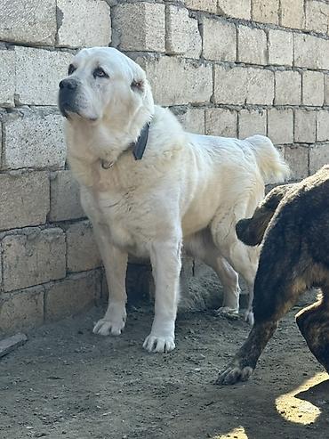 Cins: Orta Asiya çoban iti tipli (alabay tipajı) Yaş: balalıq dövrü Rəng: ağ-şabalıdı, üzündə tünd maska Zəncir və taxta darvaza daxmalı yerə öyrəşib Xüsusiyyətlər: - Həyətyanı sahə və fermalar üç...