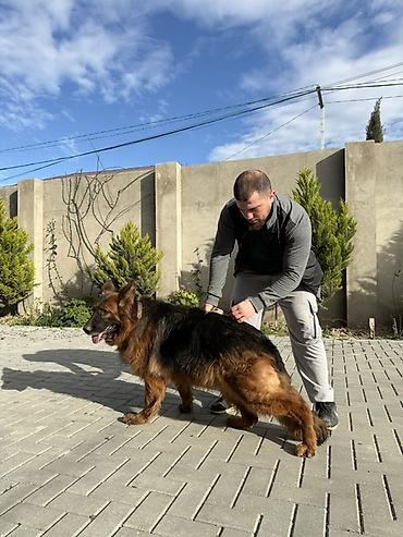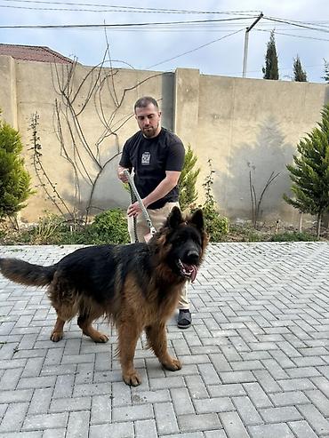 Alman çoban iti – erkək - Rəng: qara-qonur (y背 və quyruq hissəsi tünd, sinə və pəncələr qonur) - Qulaqlar dik, güclü skelet quruluşu, möhkəm əzələlər - Orta-uzun sıx yunu, quyruq dolğun - Ağıllı, d...
