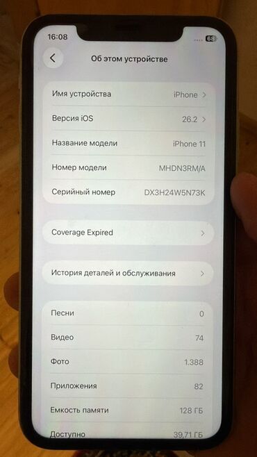 Apple iPhone 11 – ağ rəng Batareya və ekran zavod ilə deyişilib pil 100 face id və 0.5 kamera işləmir. Zaretka yaxşı saxlayır digər bütün funksiyalar tam işləkdi - 6.1" Liquid Retina HD (IPS) ekra...
