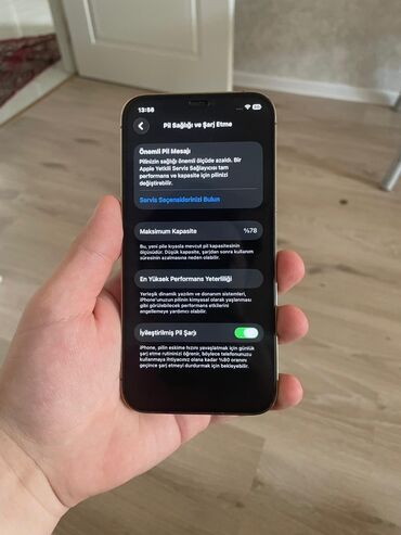 Məhsul: Apple iPhone (Pro seriyası) Xüsusiyyətlər:Model 13 pro Yaddas 128 Reng qizili Pil sevyesi 83% Az islenib