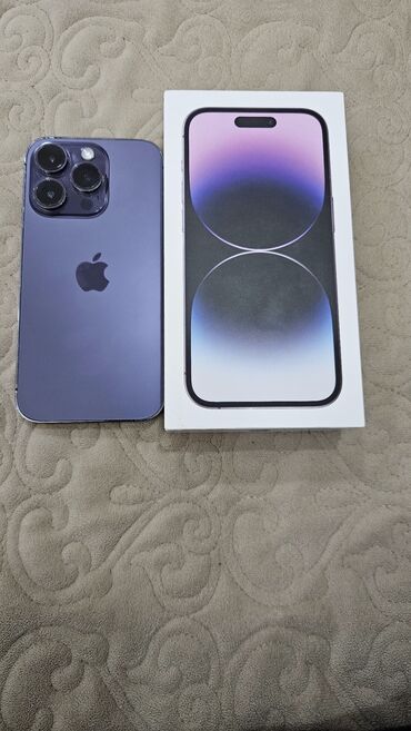 Apple iPhone 14 Pro – Bənövşəyi 14 Pro Deep Purple rəngindədir. Qutu və cihaz birlikdə verilir. Şarj kabeli standart komplektdədir (adapter ayrıca olur). 14 pro 256 yaddas heçbir prablemi yoxdu harda istəsəz yoxlatdira bilərsiz tək ekrani dəyişib orjinal ekran qoyulub başi çixan orjinall olduğun biləcəy qalan hər bişeyi zavoddu kamerasi sesi ideal işdiyir ustunde karopksain orjinal şunurun birde kabrosun verəcəm