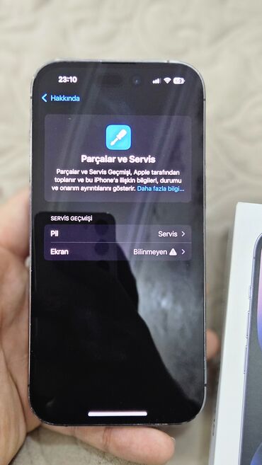 Məhsul: Apple iPhone 14 Pro 128 Gb pil 81% acilmayib 980 sondu idealdur karopqz usb var barter olunmur Rəng: Tünd bənövşəyi (Deep Purple) Komplekt: Orijinal qutu, USB‑C – Lightning şarj kabeli, sə...
