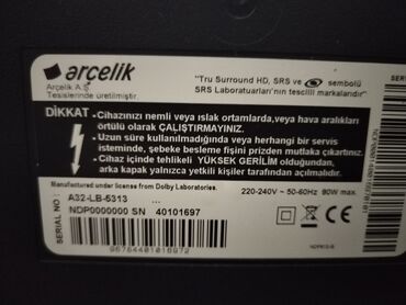 Arçelik A32-LB-5313 televizor. Sesi ve kanallarin deyisimi var. Sadece goruntu yoxdur. O da Led lampa ile baglidir. Buna gore cox ucuz qoyulub