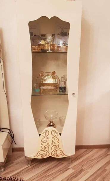 Qonaq otağı üçün şkaf. Üst hissədə olanlar divardan asılır. Satmaq fikrimiz olduğundan divardan asmamışıq. Qırıq və ya çattaq hissəsi yoxdur.