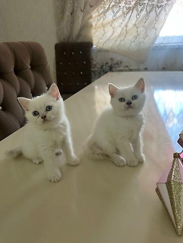 Britaniya tipli balaca pişik balası - Rəng: qar kimi ağ, quyruq ucunda yüngül boz çalar - Gözlər: mavi - Xəz: qısa və sıx, yumşaq teksturalı - Quşqulaq forması: kiçik və yığcam, başı dairəvi - Xas...
