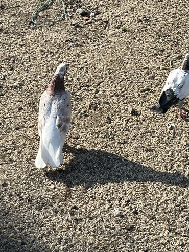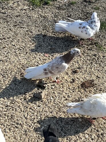 Ağ rəngli iki göyərçin cütü - Növ: ev göyərçini (ağ rəngli, biri boyun və kürək hissəsində qəhvəyi ləkəli) - Cüt şəklində - Zərif görünüş, simmetrik bədən quruluşu və təmiz lələk örtüyü - Sakit xa...