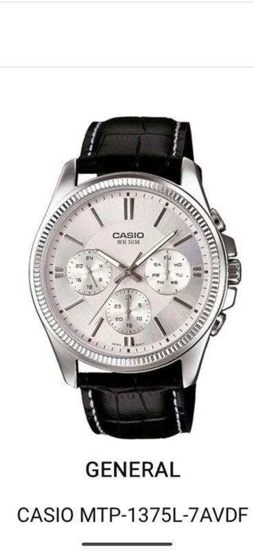 Zərif gümüş siferblat, yivli bezel və funksional sub-siferblatlarla həm ofis, həm də günlük geyimlərlə uyğunlaşan şık seçim. Model adı və kodu: CASIO MTP‑1375L‑7AVDF.