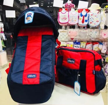 Chicco portativ beşik/daşıma çantası və süd butulkaları dəsti • Marka: Chicco • Rəng: qırmızı (beşik); şəffaf şüşə butulkalar • Beşik/daşıma çantası: - Qapaqlı günlüklə (kapüşon) və yanlarda...