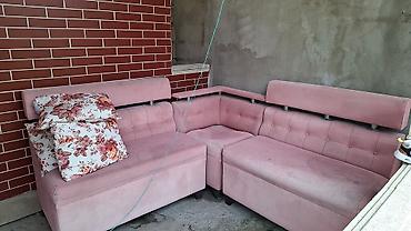 Pudra-çəhrayı rəngdə L formalı yumşaq künc divan dəsti.
