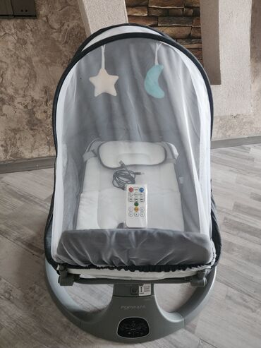 Əla vəziyyətdədir demək olar heç istifadə edilməyib.Elektrik beşik-sallanqan körpə beşiyi - Rəng: boz-ağ tonlarda - Elektrikli sallanma mexanizmi: yan dayaqlara inteqrasiya olunmuş motorla avtomat...