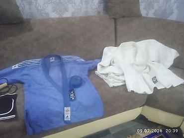 Adidas judo kiminosu – göy rəngdə, üst geyim və şalvardan ibarət tam dəst. Xüsusiyyətlər: - Brend: Adidas (çiyinlərdə üç zolaq və loqo) - Rəng: göy - Ölçü: 6/190 - Material: 100% pambıq (etiketlər...