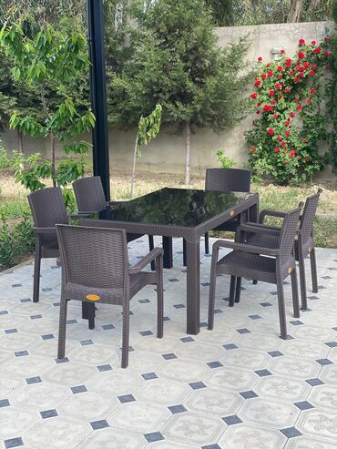 Yeni, Dördbucaq masa, 6 stul, Açılmayan, Stullar ilə, Plastik, Türkiyə