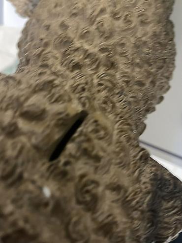 Porselen ayı fiquru - Material: yüksək keyfiyyətli porselen - Rəng: tünd qəhvəyi şir (parlaq glazur), ağ oval baza - Təsvir: oturan vəziyyətdə ayı balası fiquru, detallar incə işlənib, parlaq səth...