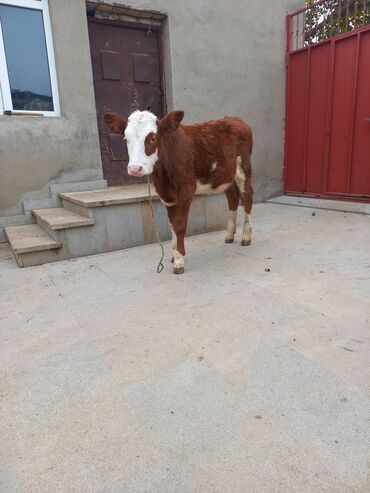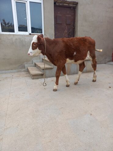 Satılır: Erkək iri buynuzlu heyvan (öküz) - Cins: ehtimalən Simmental tipli qarışıqlıq (ağ baş, qara-qonur ləkəli gövdə) - Yaş kateqoriyası: böyümüş/ətlik yönümlü - Gövdə quruluşu: enli kürək, güc...