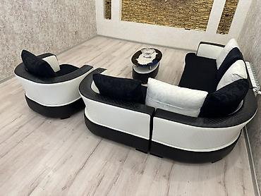 Mebel dəsti – qonaq otağı üçün - Tərkib: 1 ədəd 3 nəfərlik divan, 2 ədəd iri kreslo (qara dəst); ayrıca 1 ədəd 3 nəfərlik divan və 2 ədəd iri kreslo (açıq boz rəngdə). - Dizayn: müasir klassik üsl...