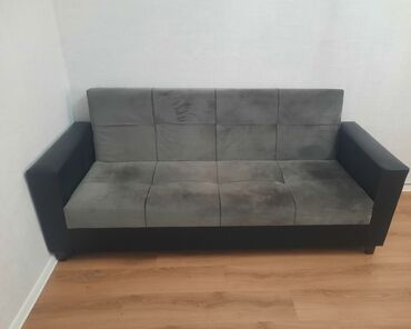 - Materiallar: yumşaq süet tipli boz parça oturacaq və arxa hissə, qollar və alt baza isə qara dəri/eko-dəri.