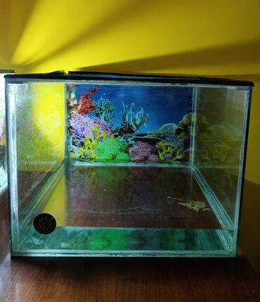 Akvarium az istifadə olunub, üzərində 1 ədəd suviner, təzə filtr, 1 ədəd tor, 1 ədəd termometr və daşlar, arxa fon şəkli, 1 ədəd kompressor işlənmiş, 1 ədəd bəzək otu,1 ədəd su dəyişmək üçün şlank ...