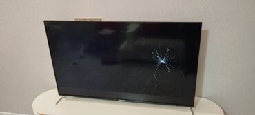 Ekranı zədələnmiş LG televizor. Televizorun qara korpusu və nazik çərçivəsi var. Qırıqlar ekranda aydın görünür. Ehtiyat hissələri və ya təmir üçün istifadə edilə bilər.