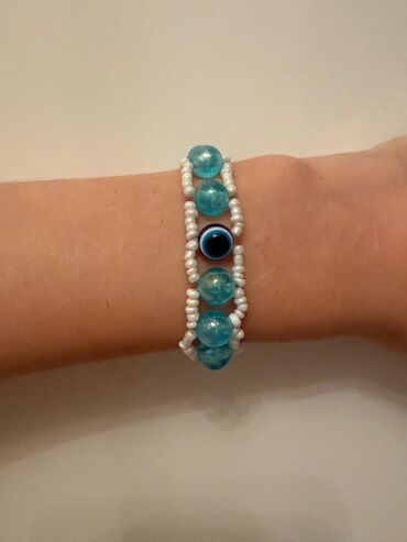 - Material: şüşə muncuqlar, elastik ip (biləyə rahat oturur)