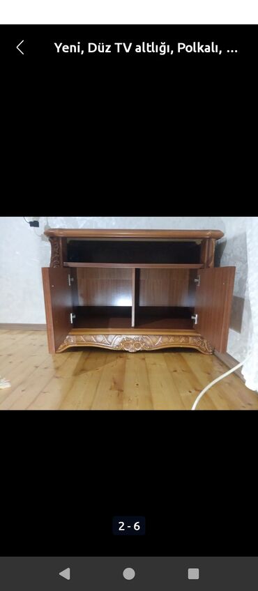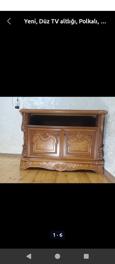 Yüksək keyfiyyətli, Malayziya istehsalı klassik üslubda TV altlığı satılır. Mebel tam ağac materialından hazırlanıb və bu da həm möhkəmliyini, həm də uzunömürlülüyünü təmin edir. Qoz rəngli örtüyü və ön hissədəki oyma dekorlar mebelə zərif və bahalı görünüş verir.