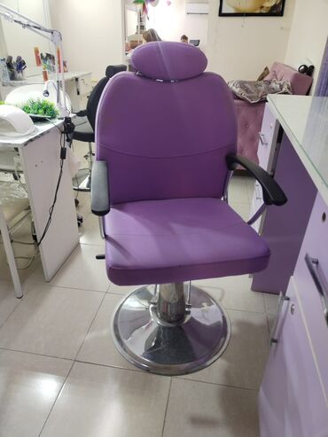 - Hidravlik salon kreslosu: hündürlüyü tənzimlənən mexanizm, metal baza, rahat süngərli oturacaq və bel dayağı, plastik qoltuqaltılar.