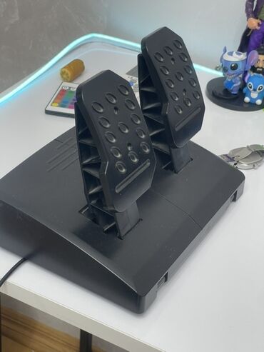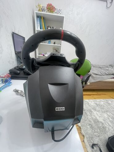 Məhsul: Hori brendinin oyun sükanı və iki pedallı modul (qaz/fren). PS simvolları olan idarəetmə düymələri sükan üzərindədir: D‑pad, L1/L2, R1/R2, Options/Share və s. Sükanın üst hissəsində mərkəz nişanı (qırmızı xətt) var. Arxa hissədə Hori loqosu görünür. Pedal blokunda geniş sürüşməz platforma və ayrı-ayrı iri pedal lövhələri mövcuddur.