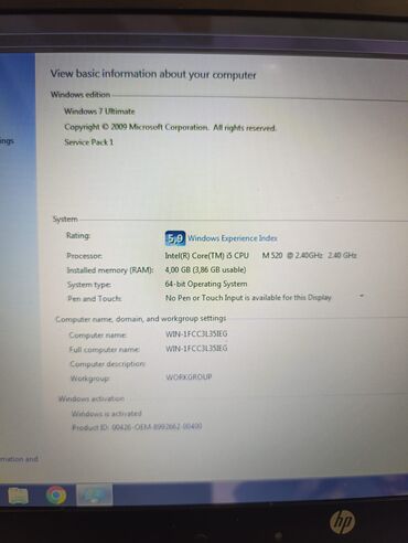 - Prosessor: Intel Core i5 M520, 2.40 GHz
