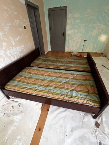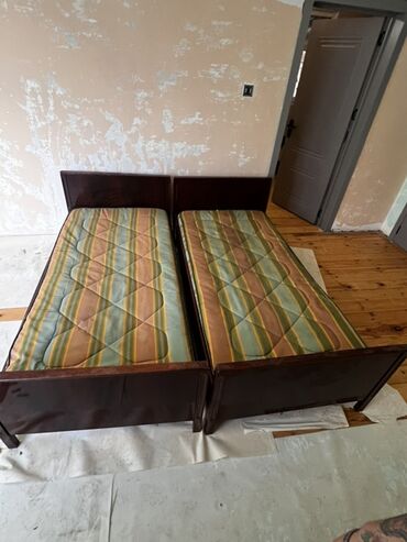 İki ədəd eyni model tək nəfərlik taxta çarpayı dəsti.