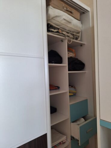 - Ayrı sürüşkən qapılı kupe şkaf: çoxsaylı rəflər və çekmecələr.