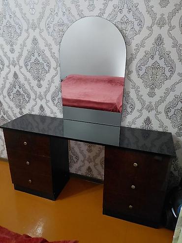 - Güzgülü makiyaj/komod masa – üstündə böyük yarımdairəvi güzgü, hər iki tərəfdə 3 çekmecəli bölmə